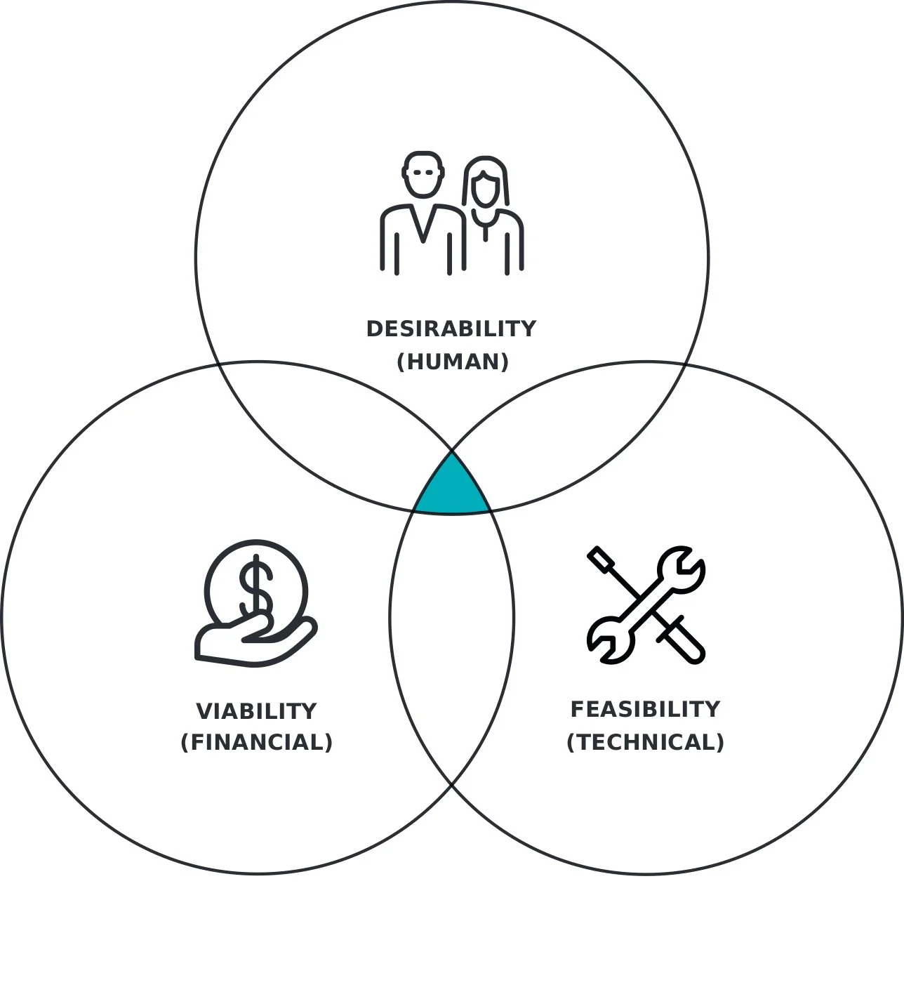 Desirability encapsulates the needs, goals and ambitions of the end-user. Sustainable success requires a balance between desirability, financial sustainability – viability and technical ability – feasibility.